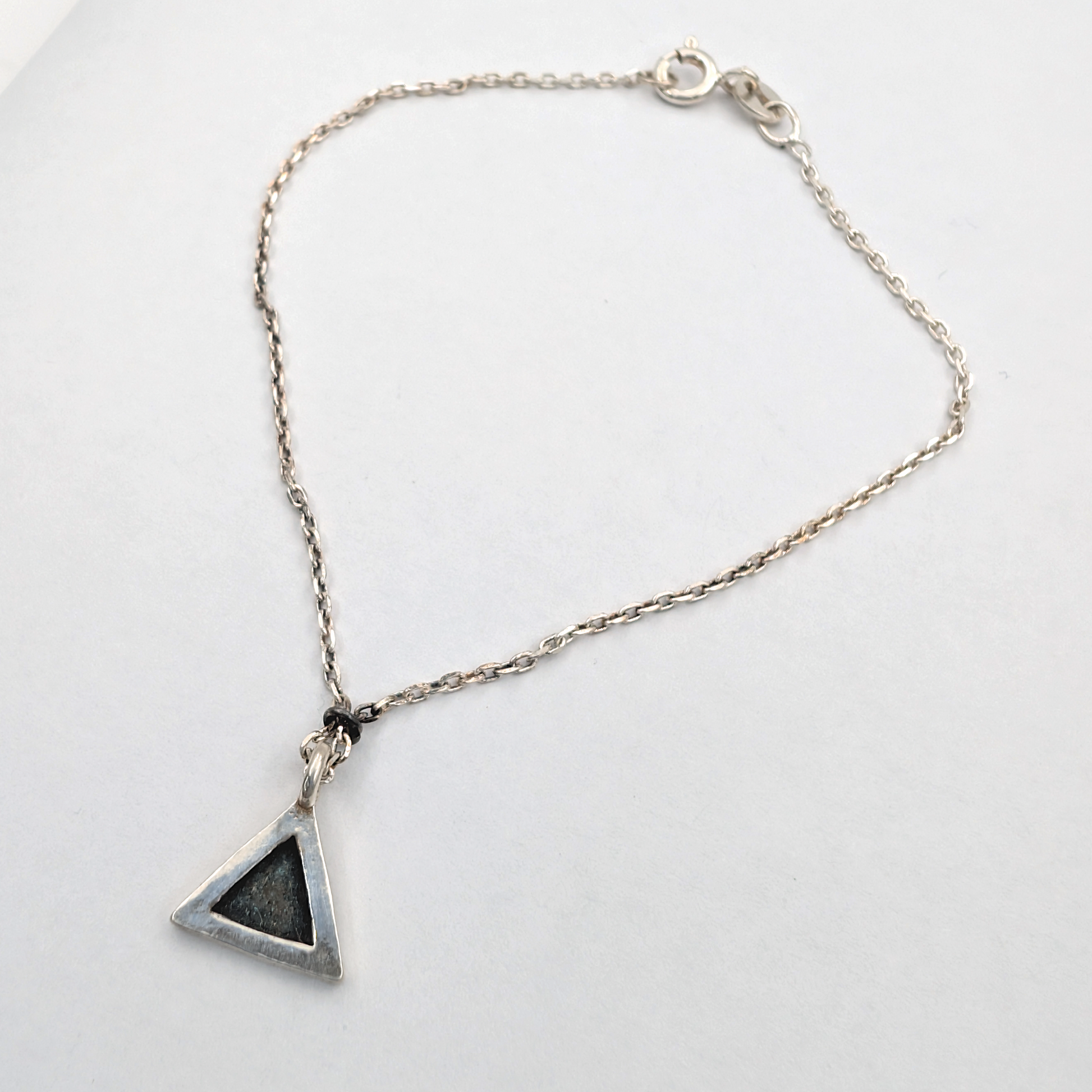 Pulsera minimalista fabricada en plata con diseño geométrico